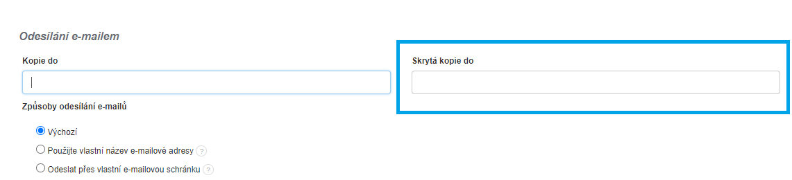 Toto pole se používá k uvedení e-mailové adresy osoby, která obdrží skrytou kopii zprávy. Informace o této události má pouze majitel účtu a osoba, která korespondenci přijímá.